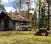 Den grå stugan är alltid öppen och har en bred våningssäng för 2-4 personer samt öppen spis att elda i. El finns i ett uttag i stugan som också är utrustad med husgeråd för matlagning.